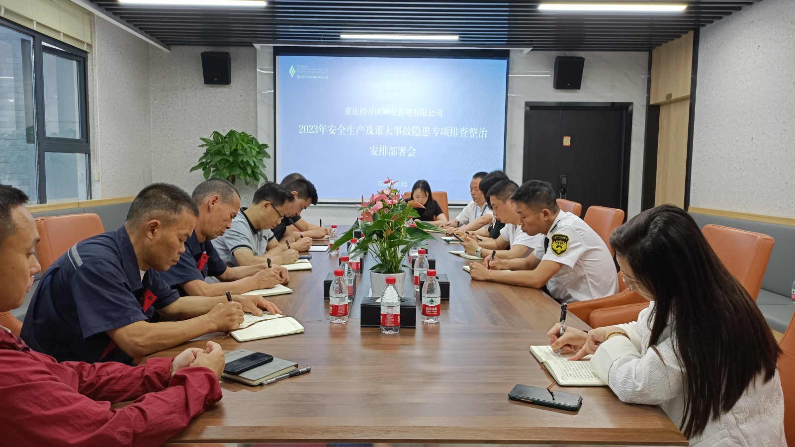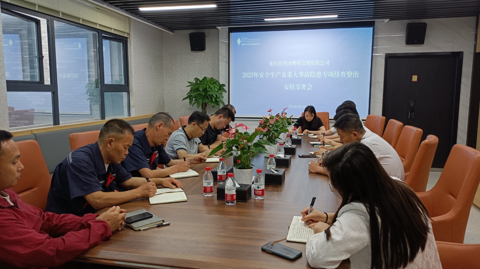 5月19日,重庆经开区物业管理有限公司副总经理张艳主持召开2023年安全生产及重大事故隐患专项排查整治安排部署会,传达贯彻落实集团公司“2023年第二季度安全生产工作会暨重大事故隐患专项排查整治行动动员部署会”会议精神,安排部署安全生产及隐患排查整治工作。公司各部门负责人及一线主管级人员参加会议。