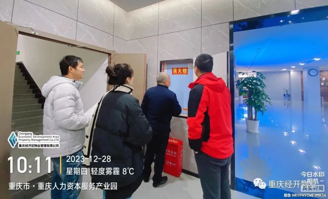为切实做好元旦假期间的安全工作,持续筑牢安全生产防线。2023年12月28日,重庆经开区物业管理有限公司组织开展了迎龙创新港园区节前安全生产大检查,重点针对园区水、电、气管网,中央空调、电梯、开闭所、配电室、水泵房、锅炉房、消防设施,以及入驻企业冬季用火用电、装修施工进行了全面检查,对发现的安全隐患,现场提出整改措施,限时整改。
